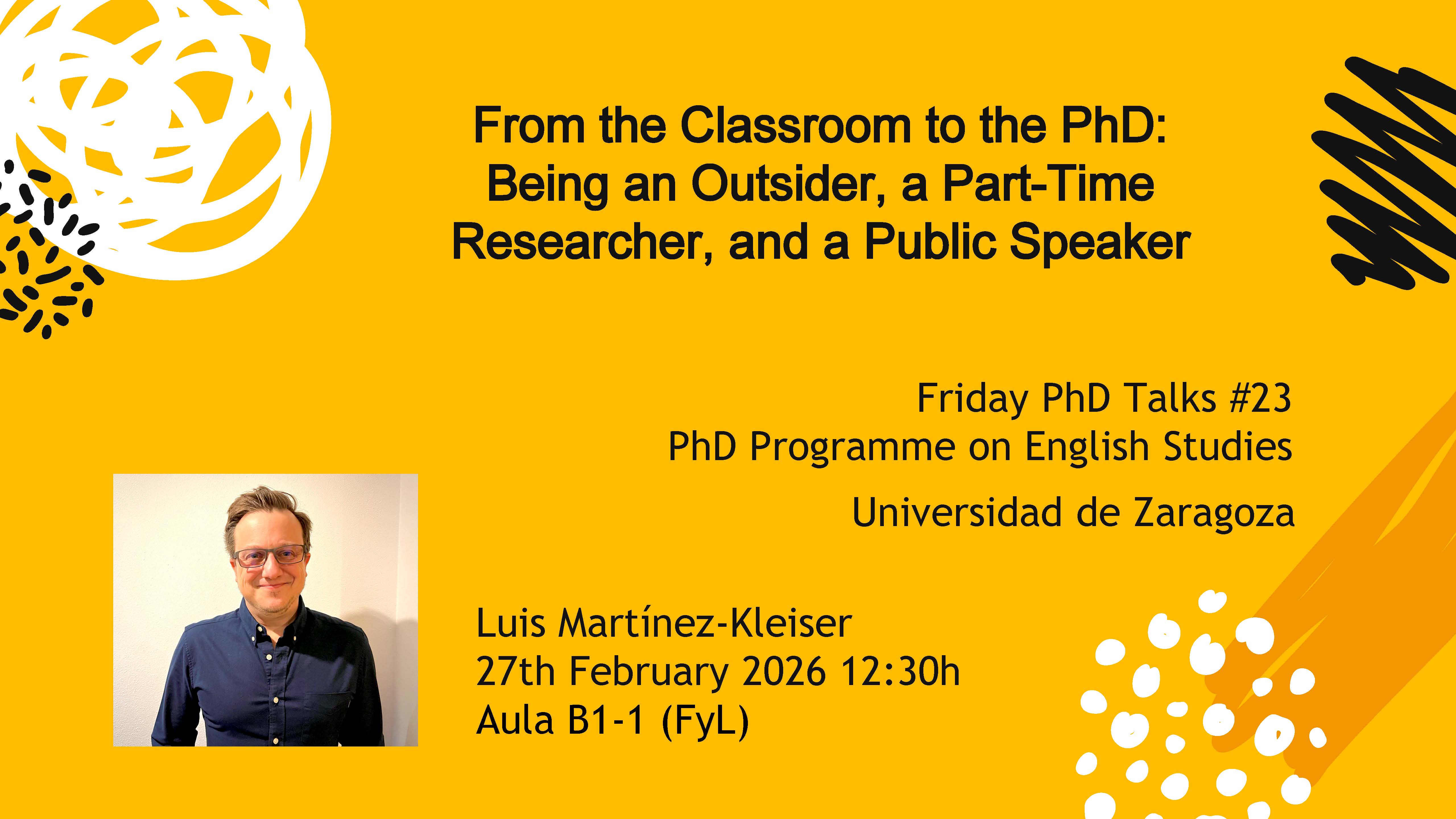 Friday PhD Talk #23. Luis Martínez-Kleiser. 27/02/2026. "From the Classroom to the PhD: Being an Outsider, a Part-Time Researcher, and a Public Speaker".